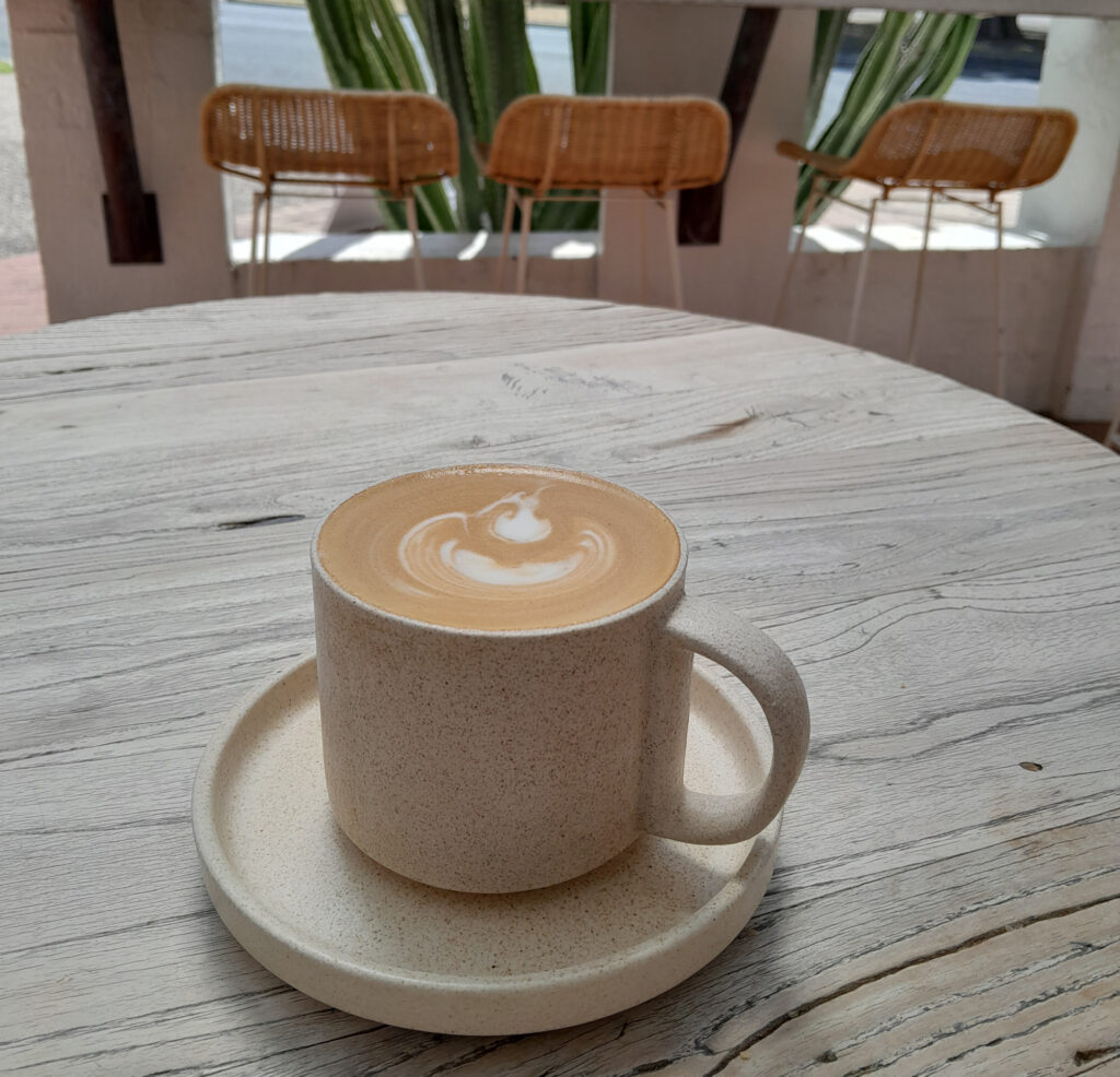 I headed to Salt Café Surf on arriving into the town to grab a takeaway oat latte. Service was friendly and quick, with a delightful coffee soon being delivered from their La Marzocco machine.
